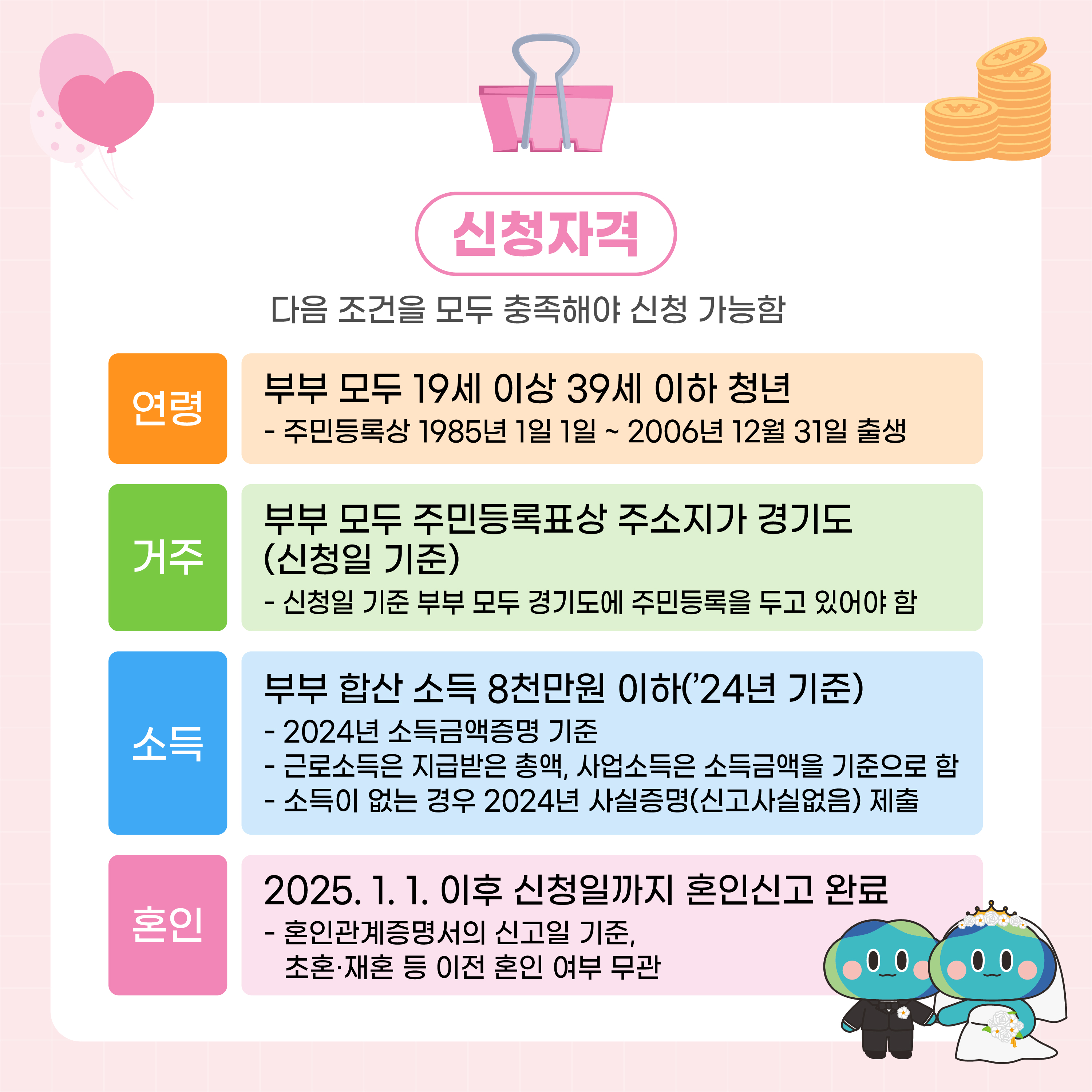 - 2025년 1월 1일 이후 신청일까지 혼인신고를 마친 신혼부부